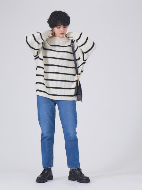 コーデに迷った時や朝支度に余裕がない時は、ざっくりニット×手持ちボトムでお洒落見えが完成♪