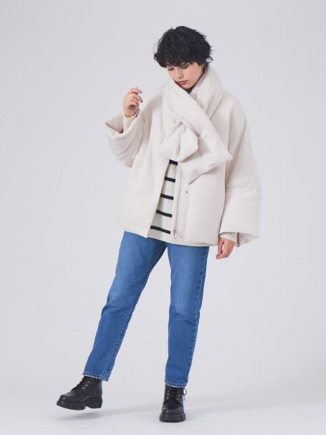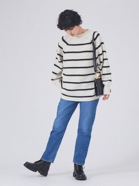 デニムはもちろん、マキシスカートやワイドパンツなど、ボリュームのあるボトムと合わせて、ゆるっとリラクシーなスタイリングもおすすめ◎