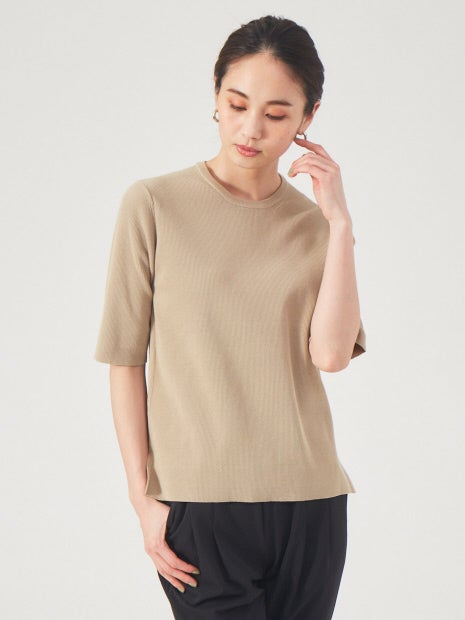 Tシャツをニットソーで仕立てた、品のある大人のベーシックアイテム◎