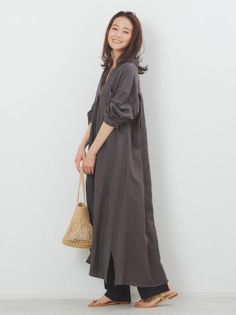 高品質なコルトレイクリネンを使用したAラインワンピース。