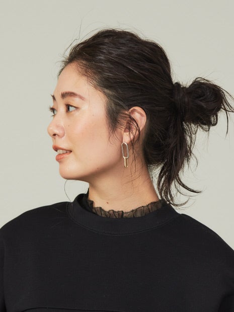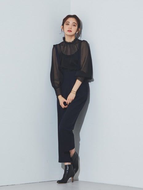 今シーズンは、スウェットやニットのインから襟のフリルをちらっとのぞかせるのが気分♪