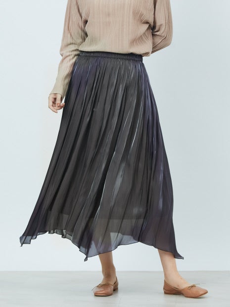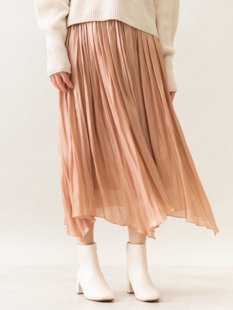 サテンギャザーイレギュラーヘムスカート