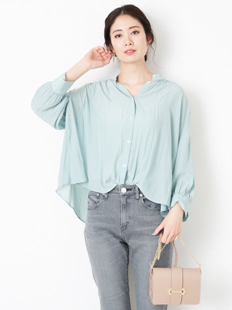 ニュアンスカラーが春らしい印象のとろみブラウス。