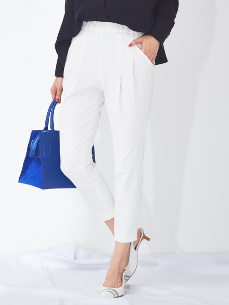 *春の通勤スタイルにおすすめ*point1.計算しつくされたタックラインが腰回りをカバーpoint2.身体のラインをすっきり見せてくれるテーパードシルエットで美脚をキープpoint3.ストレスフリーな履き心地を実現する縦横のびる2WAYストレッチスタンダードなイージーパンツにクロップト丈がお目見え。履き心地の快適さはそのままに、足首見せで抜け感をプラス。スタイリング全体を春夏らしい印象にアップデートしてくれます。アンクルストラップのついたシューズともグッドバランスです。