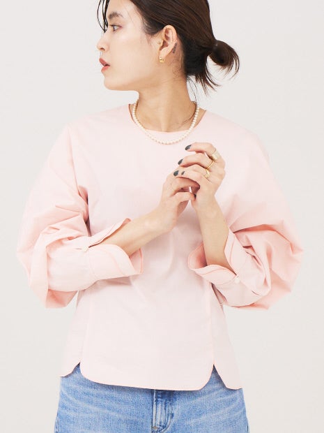 袖と裾部分に施したカットデザインが特徴的なブラウス。