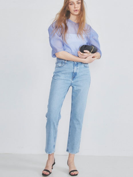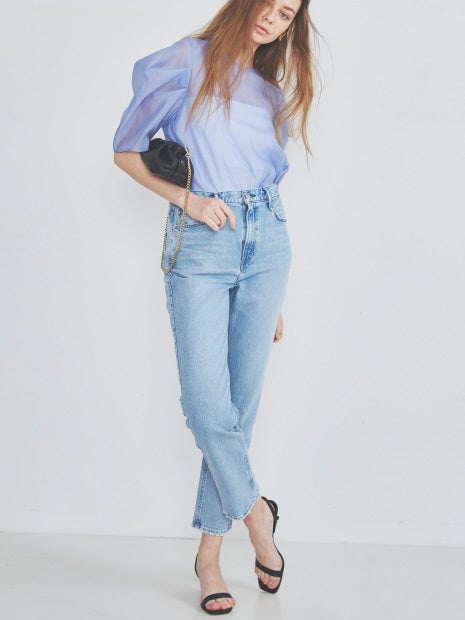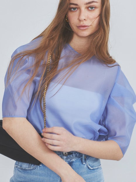 袖がデザインポイントのシアー素材のブラウス。