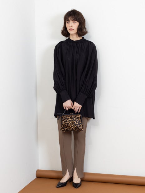 細見でスリムなシルエットなのでオーバーサイズシャツやスウェット、ざっくりニットなど着丈のあるトップスとの合せがおすすめです。