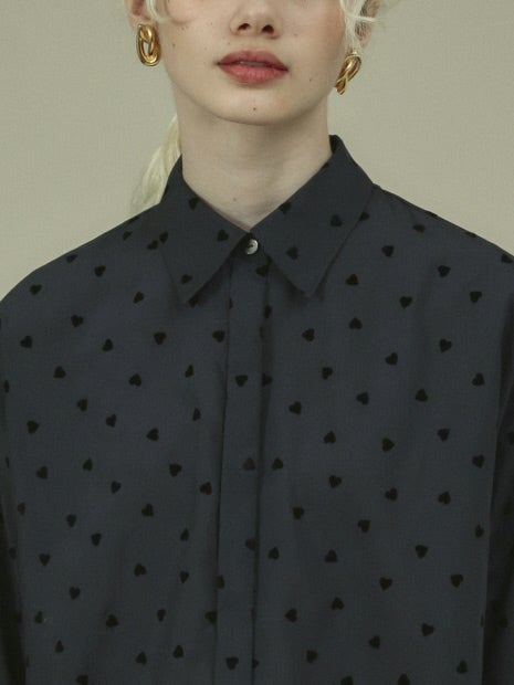 ハート柄にやや透け感のある生地が特徴のトレンド感あるシャツです。