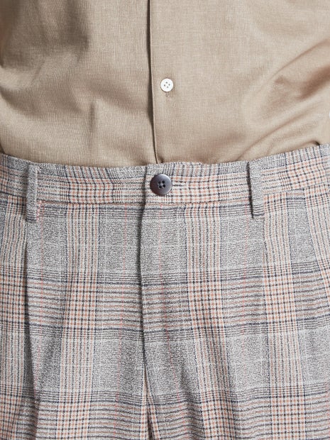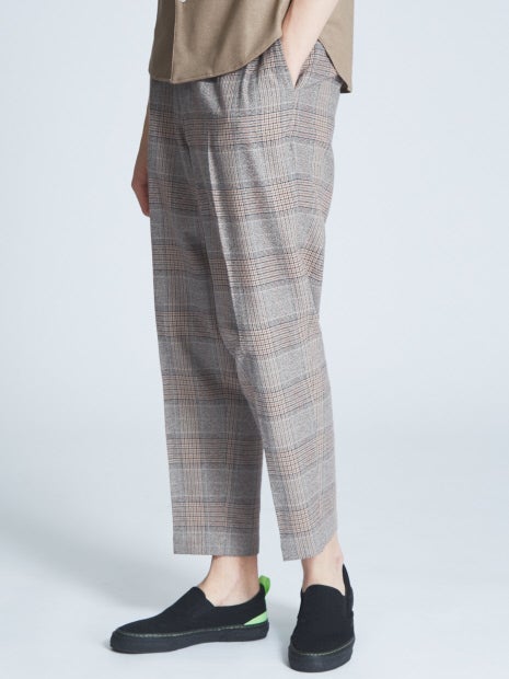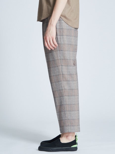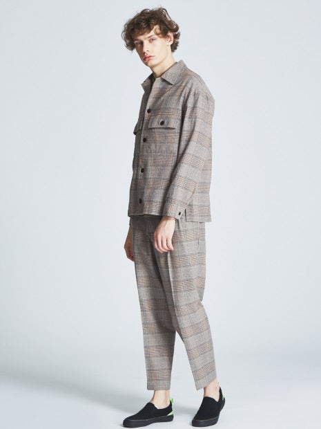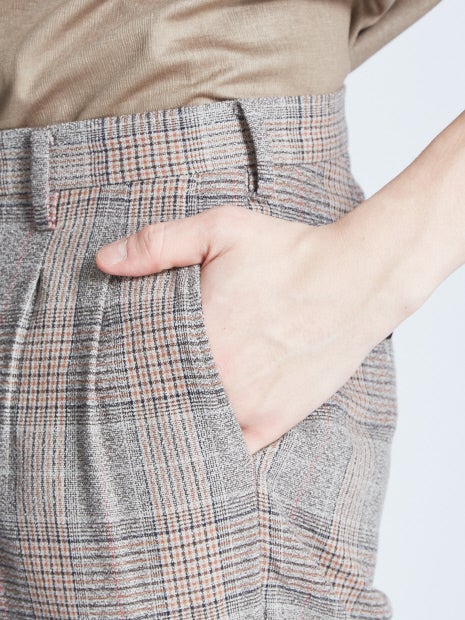 【素材】ラスティックなコットンブークレー素材を使用。風合いのある生地が柔らかい印象です。【デザイン】トレンド感のあるワイドシルエットのパンツ。ゆったりとしたサイズ感ですが、アンクル丈にすることで大人らしく仕上げています。春らしいベージュ系とダークトーンのブラウンのオリジナル柄を別注。【コーディネート】同素材別売りのブルゾン(品番:00380010007)とセットアップでの着用がオススメです。