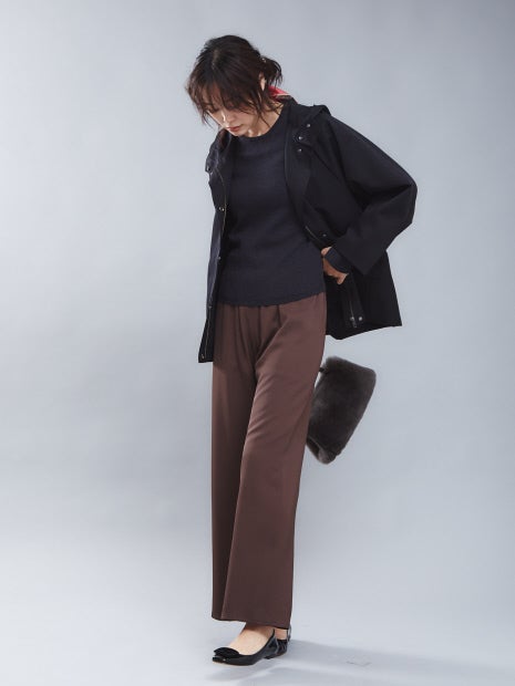 ボタンやファスナーを隠しミニマルな雰囲気を保つことで、品のある見た目をキープしました。
