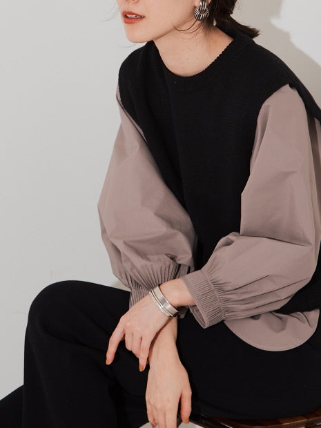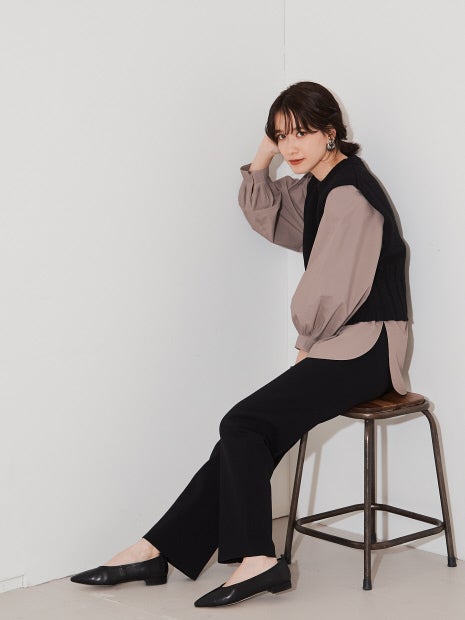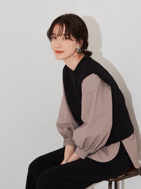 袖デザインでは女性らしさをだしつつ、オールインワンのインに着たり、ニットベストとニットパンツの合わせで着ると少しモードでかっこいい印象に。