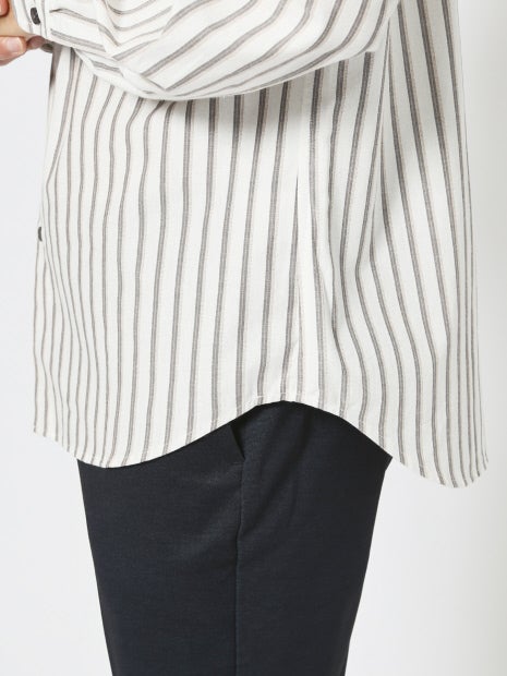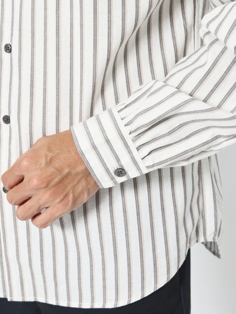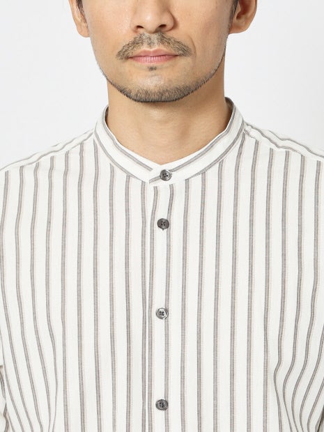 ナチュラル コットン バンドカラー ストライプ シャツ