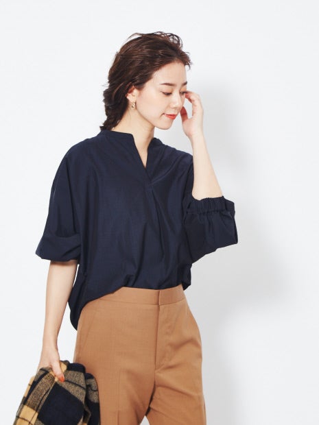 袖にもギャザーを寄せてボリュームを出しているので、すっきりとしたパンツなどと合わせていただくのがおすすめ。
