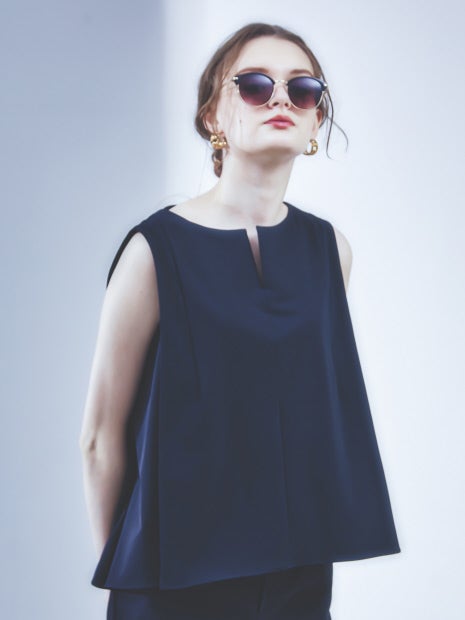 【セットアップ対応】2WAYストレッチスリットネックノースリーブ