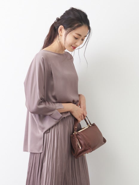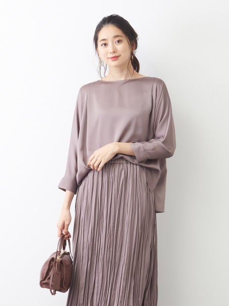 サテンボートネックブラウス
