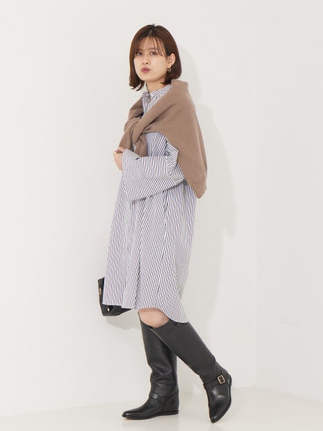 足元にロングブーツを合わせると秋らしいコーディネートに。