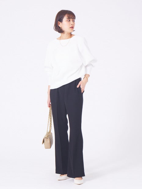 ゆとりを持たせたトレンド感あるフレアパンツ。