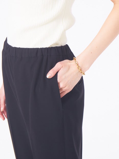 適度に厚みのあるダブルクロスとセンタープレスを施したことによって、肉感を拾いにくくし縦のラインが脚を長く美しく見せてくれます。