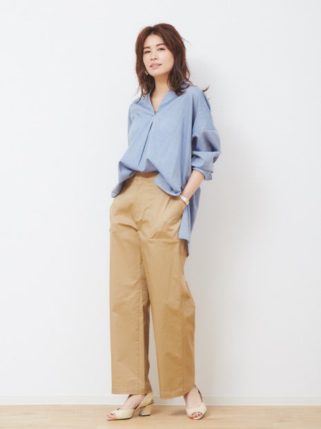 程よくゆとりのあるセミワイドシルエットでカジュアルになり過ぎずどんなトップスにも合わせやすいシンプルさも魅力。