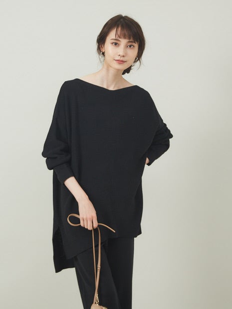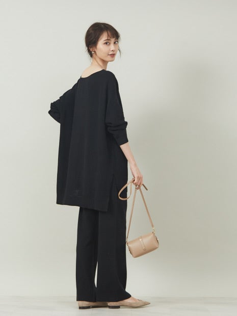 ヒップも完全に隠れる長めの着丈なので、ニットパンツとのバランスが◎