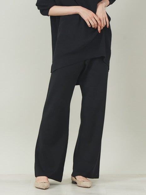 ミラノリブのニットパンツは、裾に向かってややフレアなシルエット。