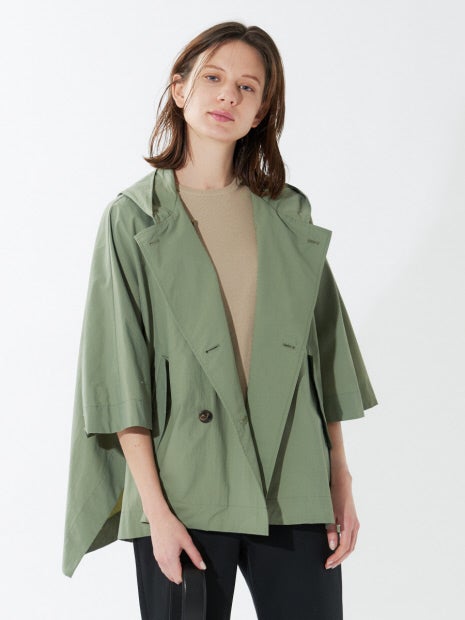 マウントパーカー感覚で着られる撥水生地を使用したポンチョ型の春アウター。
