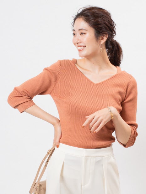体にフィットしたシルエットなので、フレアスカートやワイドパンツなどボリューム感のあるボトムスとの相性も◎