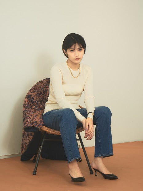 上質素材のリブニットは、シンプルなデニムスタイルもどこかリッチな雰囲気に♪