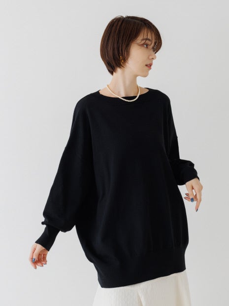 ボクシーなシルエットと長めの着丈でカジュアルに着られるニット。