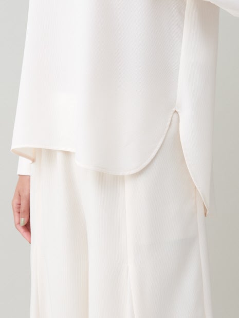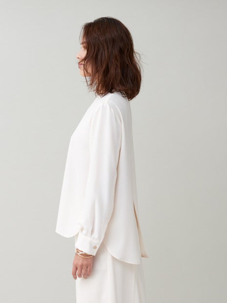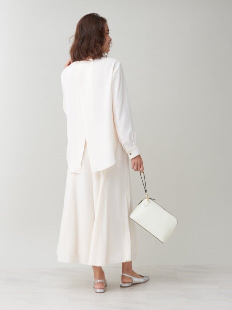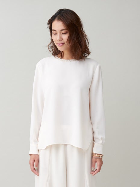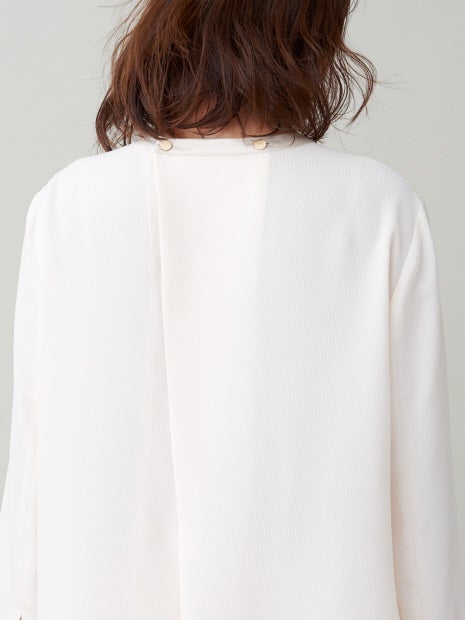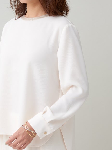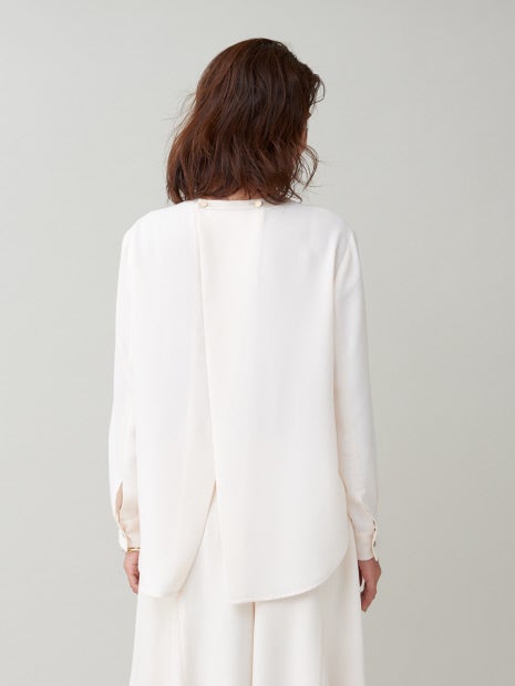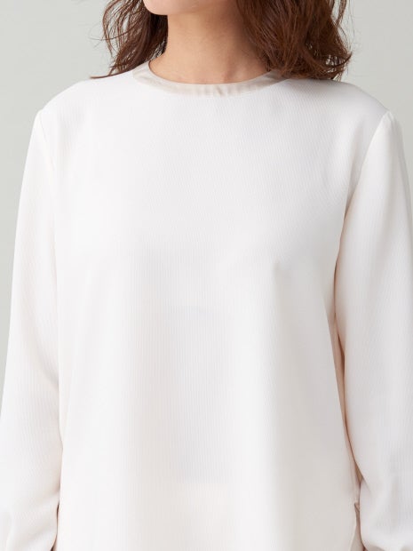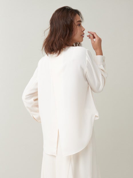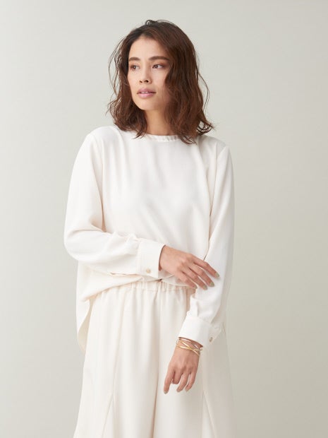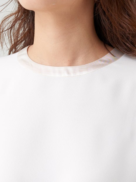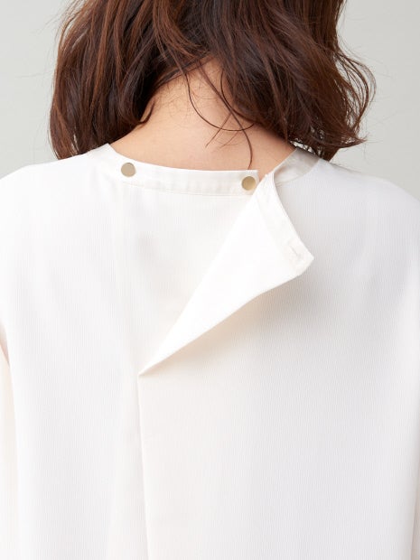 ・サテンテープで質感のコントラストをつけ、ベーシックながらも表情のあるブラウスに仕上げました。