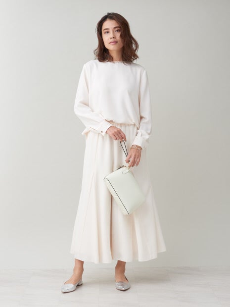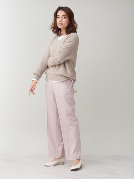 前はシンプルな見た目なので、通勤から休日と幅広いシーンで活躍します。ニットの下に重ね、裾をチラ見せさせたレイヤードスタイルも今年はおすすめ。同素材のフレアパンツで合わせるとセットアップとしても楽しめ、ホテルや高級店での会食や12月のホリデーシーズンのお出かけにも◎