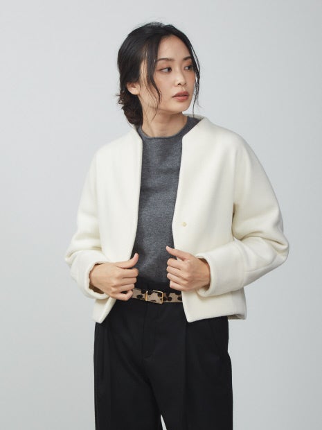 ブルゾン感覚で羽織れるショート丈のウールコート。
