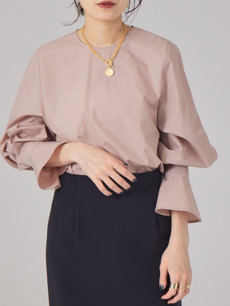 身頃はシンプルなクルーネックでシャープに仕上げ、甘めな袖デザインとのバランスをとりました。カラーバリエーションはトレンドのニュアンスカラーで揃えています。