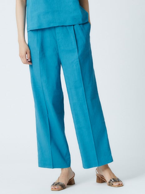 ニットやブラウスなど、軽やかな雰囲気を出したいならリネン素材のパンツが◎
