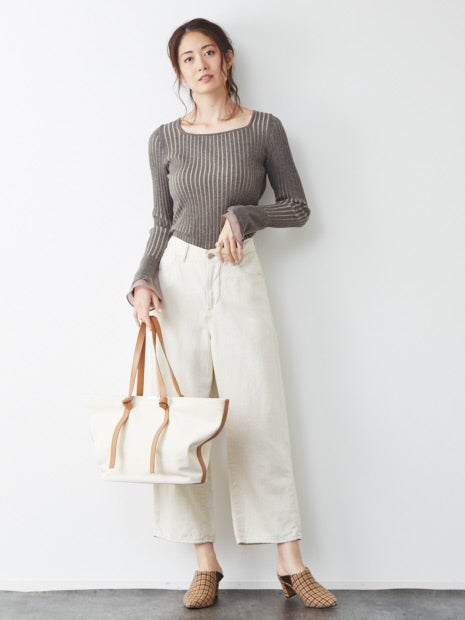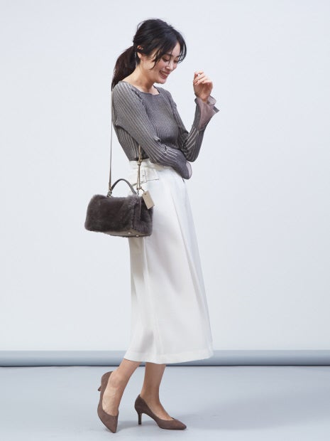 コンパクトなシルエットなので、ボリュームのあるフレアスカートやワイドパンツと相性抜群です。