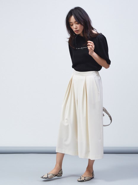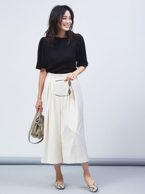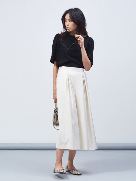 とろみ感のあるフレアボトムならクラシカルムード漂うキレイめスタイル。