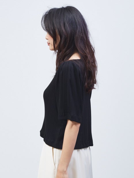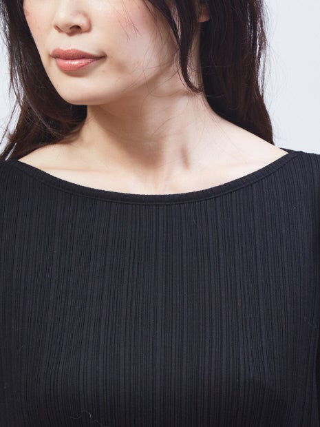 肩周りが大きく見えないように、ボートネックと肩幅を少し狭く設定しスッキリ見えるように仕上げました。