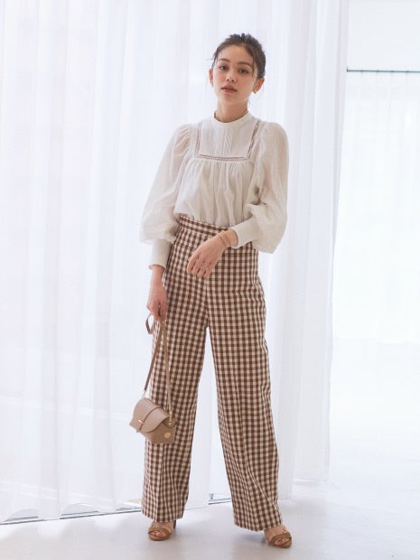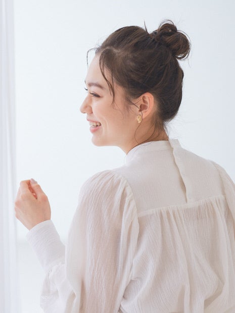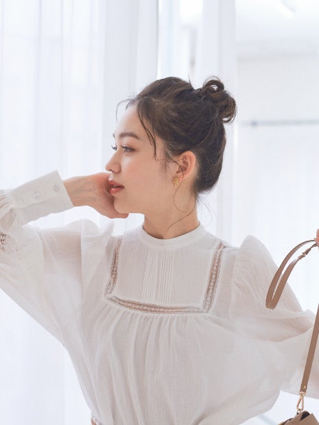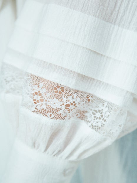 とても繊細なリバーレースを胸元と袖口にあしらい、レースの特徴を生かす為に透け感の出る仕様にしています。