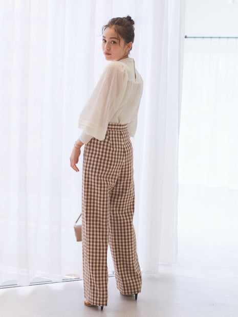 華奢に見えるよう肩はコンパクトに、着用にも無理が出ないよう袖はギャザーをいれ大きくボリュームのあるメリハリの利いたシルエットになっています。