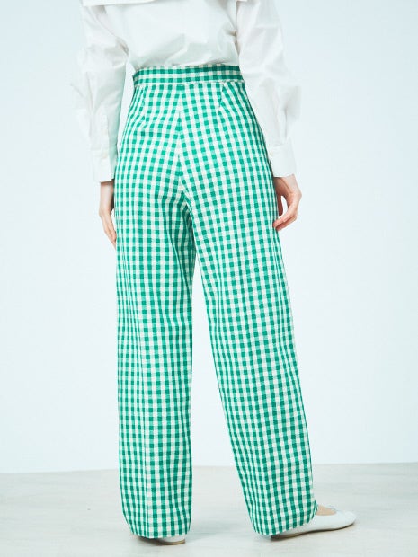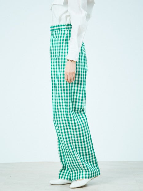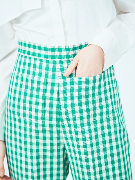 コットンリネンをベースにしたざっくりとしたギンガムチェックの生地を、イチからオリジナルで作りあげたパンツ。