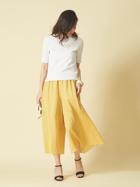 スカート見えのスカーチョは、歩くたびに靡く裾が軽やかに女性らしさをぐっと高めてくれます。