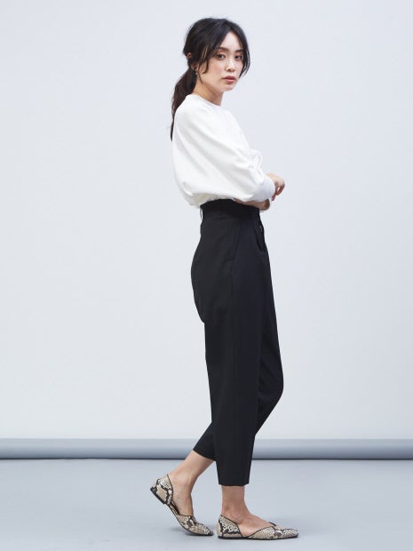 クロップド丈なので、フラットシューズやブーツとも相性が良いのもポイント。