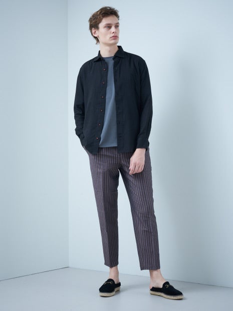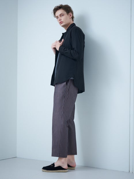 【Recency of Mine】先染めリネンワッシャーストライプ パンツ