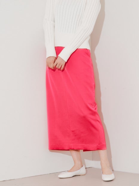 品が良く、上品な見え感のヴィスコース×ウールのサテン素材を使用したIラインスカート。