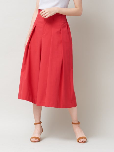 夏らしいサラリとした素材感のフレアータックパンツ。