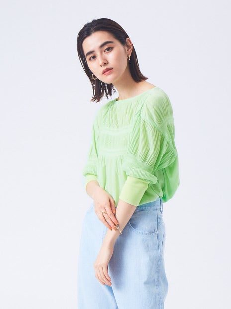 マジョリカプリーツで、ギャザーのような優しいプリーツが女性らしくフェミニンなカットソーです。