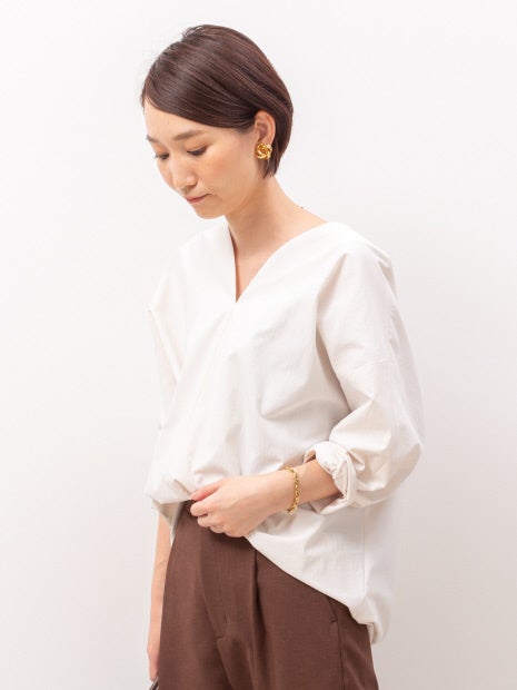 ゆるやかなカーブで甘すぎないハート型のネックが大人な印象のブラウス。