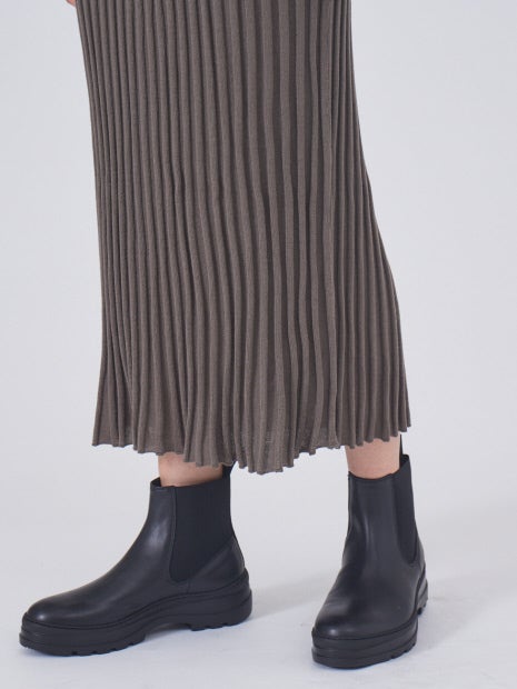 シンプルなニットワンピースですが、凹凸感のあるリブ編みで表情があります。