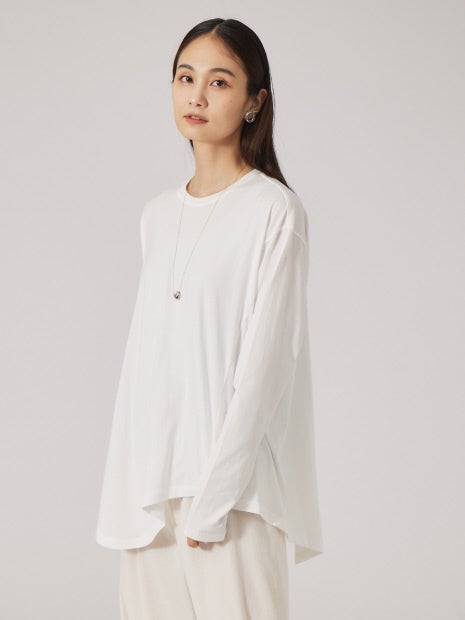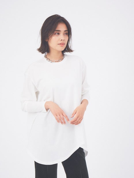 アシンメトリーな裾が目を惹くロング丈カットソー。