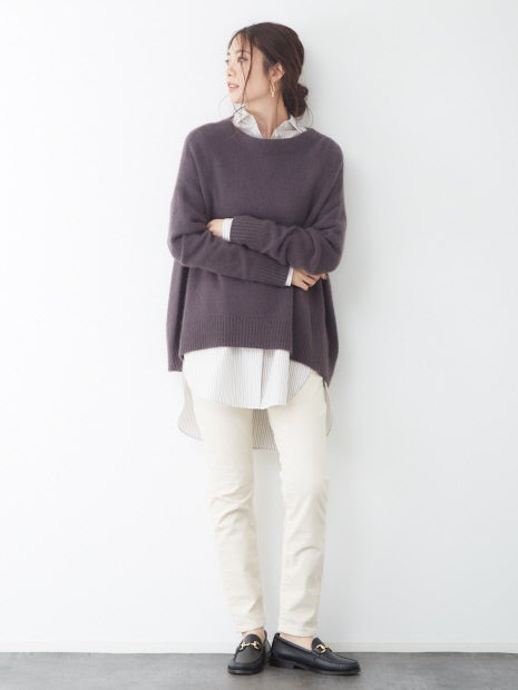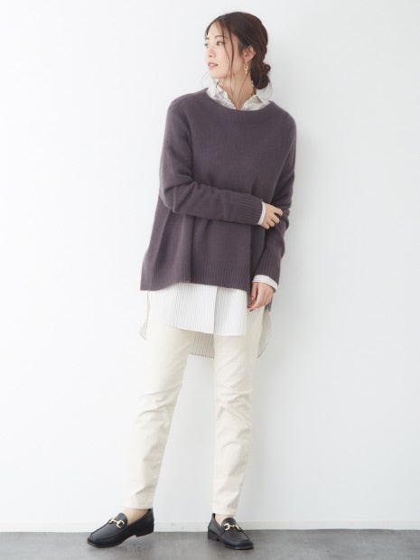 一枚ではもちろん、インにシャツを入れたレイヤードスタイルもおすすめ!